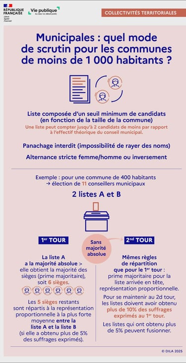Les consignes de votes ont évolué pour les communes de moins de 1000 habitants, il n’est désormais plus possible de rayer des noms ou de panacher des listes. Retrouvez ci-dessous une infographie détaillant la marche à suivre.
